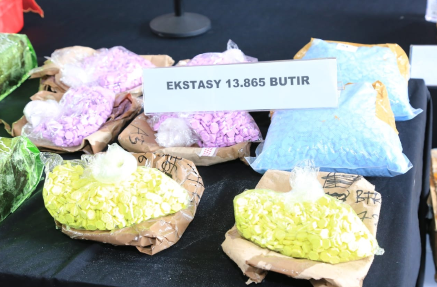 “Pengungkapan pertama terjadi di TKP yang berlokasi di Jakarta Pusat pada 24 Mei 2021 lalu, tim subdit 4 menangkap empat orang tersangka berinisial (SR), (IY), (EM), dan (MR) dengan barang bukti 10.000 butir ekstasi berasal dari Jerman yang diselundupkan melalui sparepart,” ungkapnya.