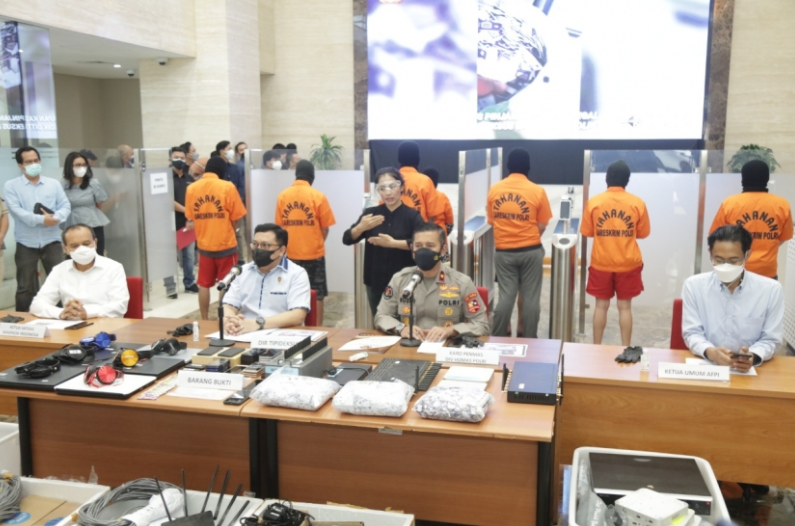 “Kemudian ini ada beberapa HP dan laptop yang fungsinya untuk melihat alur transaksi, transaksi komunikasi dari para pelaku itu,” imbuhnya.