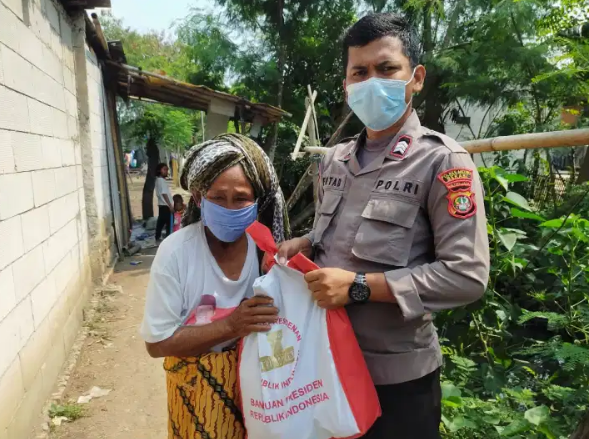 Jakarta-Kepolisian Sektor Cabanbungin membagikan paket sembako bagi salah satu warga di Cabangbungin yang layak menerima bantuan sosial (bansos) dan terdampak Covid 19, pada Sabtu (22/05/2021) siang.