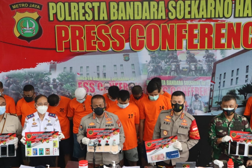 Diberitakan sebelumnya, dalam pengungkapan kasus itu, terdapat 15 orang tersangka yang dibekuk oleh aparat kepolisian. Beberapa di antaranya bahkan merupakan pekerja di lingkungan Bandara. Beberapa di antaranya seperti mantan relawan hingga yang masih aktif sebagai validasi Kantor Kesehatan Pelabuhan (KKP) Bandara Soetta.