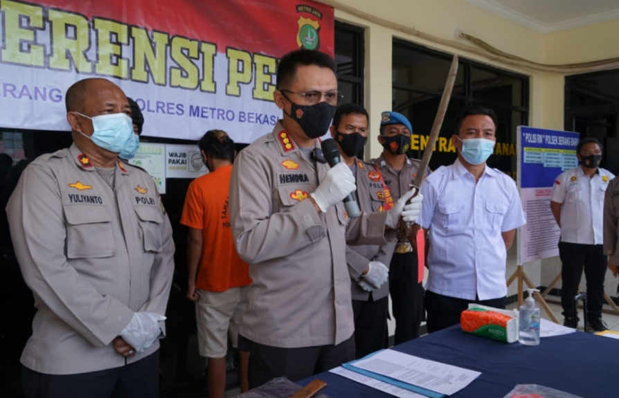 ”Kedua tersangka diamankan anggota kita karena melakukan aksi premanisme pencurian dengan kekerasan membawa senjata tajam,” tutur Kapolres Metro Bekasi (Kombes. Pol. Hendra Gunawan).