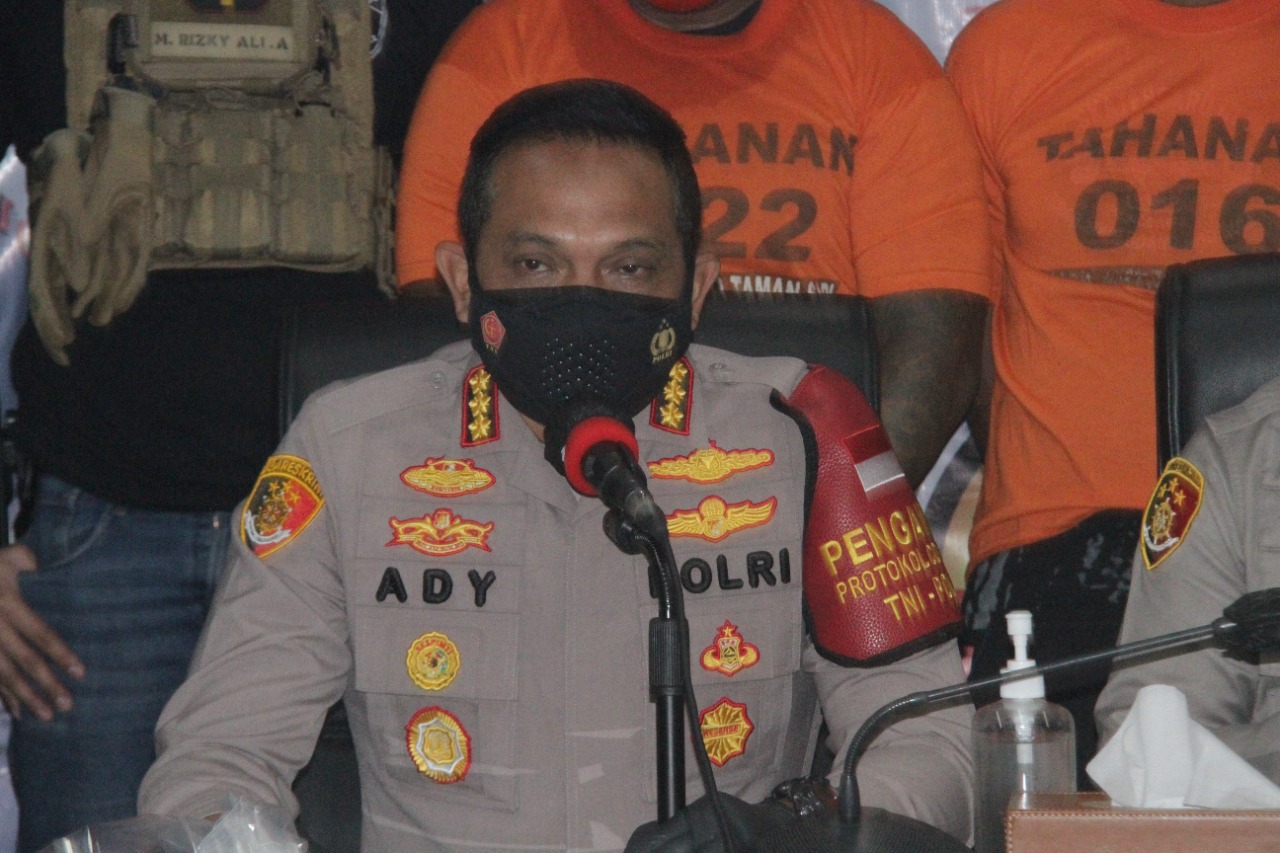 “Kami tetapkan empat tersangka yakni JP yang membawa senjata api revolver. HS, DT dan PW atas kepemilikan senjata tajam yang kami amankan di lokasi penangkapan kawasan tebet, Jakarta Selatan,” kata Ady saat konferensi pers, Kamis (24/6/2021).