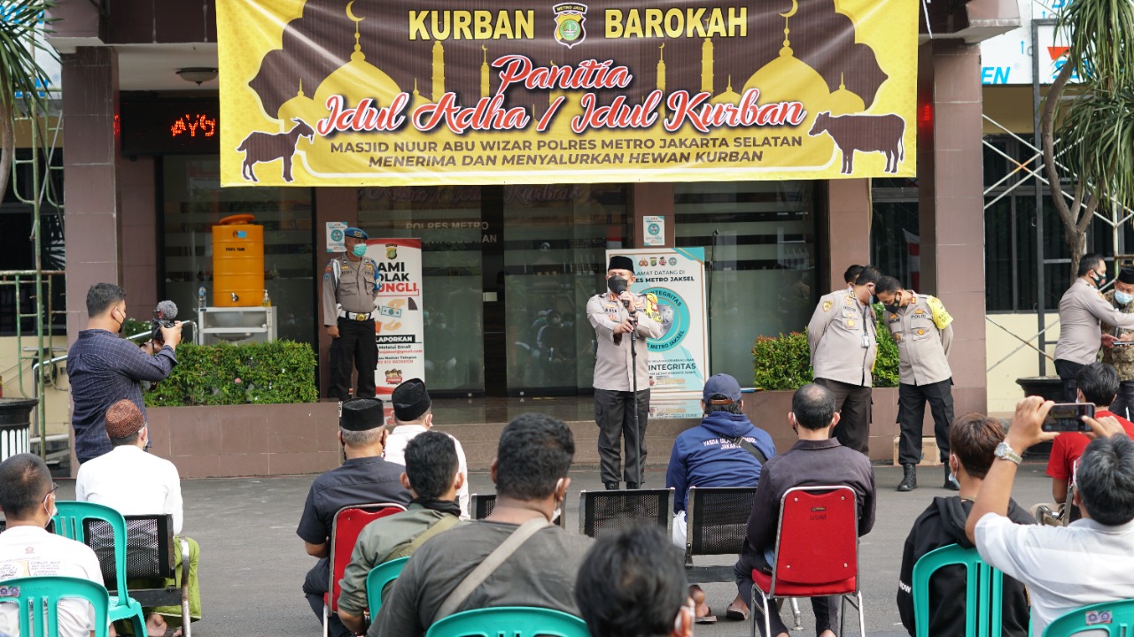 JAKARTA – Dalam rangka Hari Raya Idul Adha, Polres Metro Jakarta Selatan melaksanakan penyerahan Hewan Kurban dari Polda Metro Jaya pada hari Sabtu 17 Juli 2021 di lapangan Mapolres. Kegiatan penyerahan dipimpin oleh Kapolres Metro Jakarta Selatan Kombes Pol. Azis Andriansyah, SH, SIK, MHum.