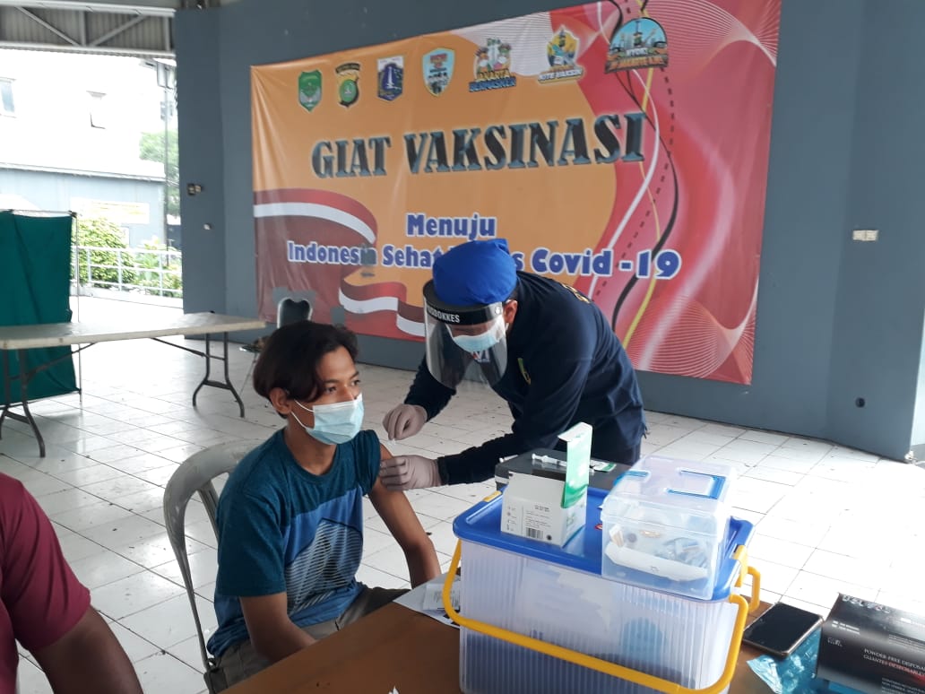 Jakarta-Polres Pelabuhan Tanjung Priok melaksanakan kegiatan Vaksinasi Massal di Aula KTJ (Kampung Tangguh Jaya) Rusun Budha Tzu Chi RW. 020 Pelabuhan Muara Angke, Kamis( 24/06/2021)