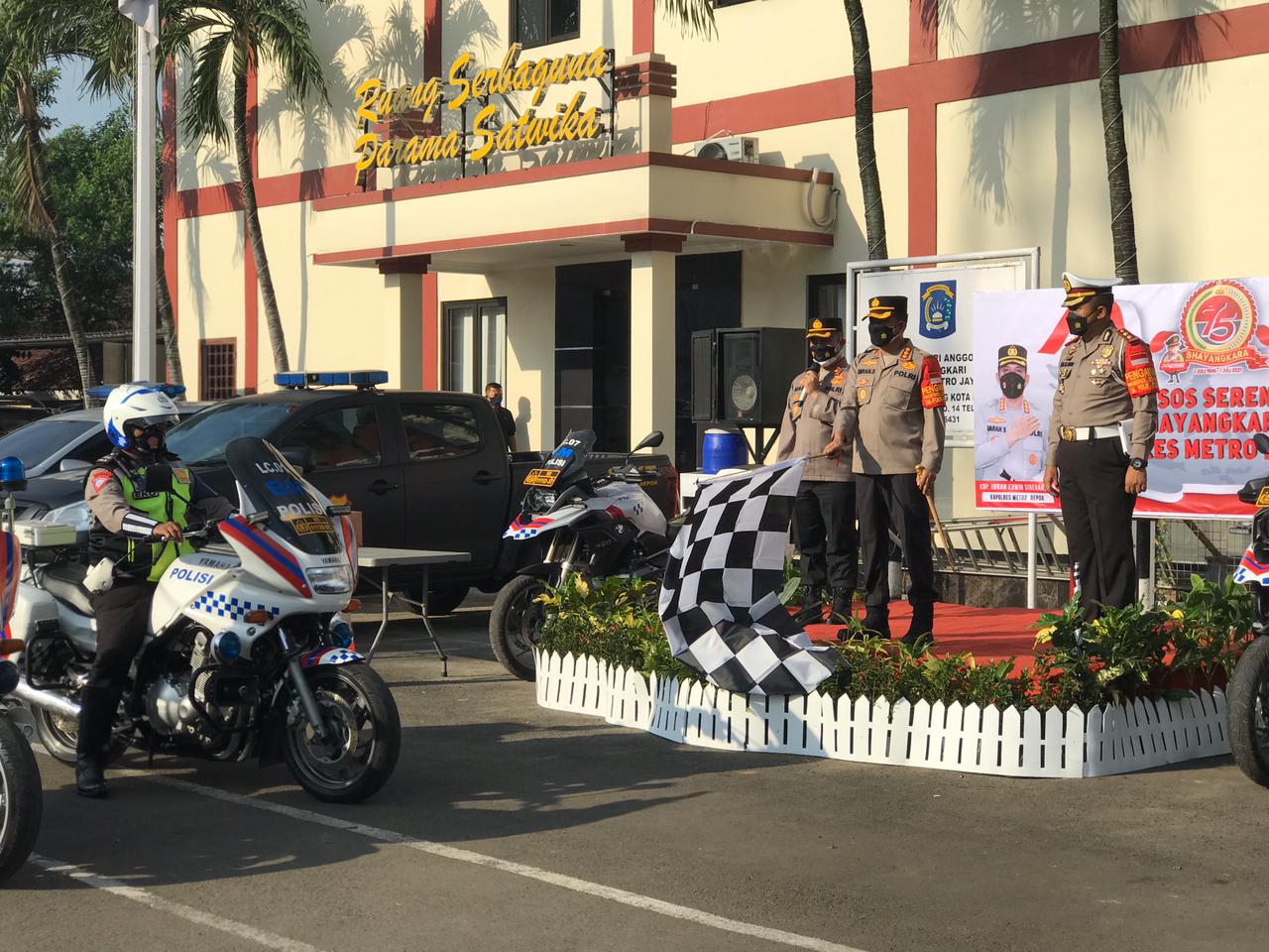 Jakarta–Polres Metro Depok melaksanakan kegiatan bakti sosial dengan membagikan ribuan paket sembako dalam rangka menyambut HUT Bhayangkara ke 75, Kapolres Metro Depok Kombes Pol. Imran Edwin Siregar dan Kasat Lantas Polres Metro Depok AKBP Andi Muhamad Indra Waspada  memimpin langsung acara bakti sosial ini.