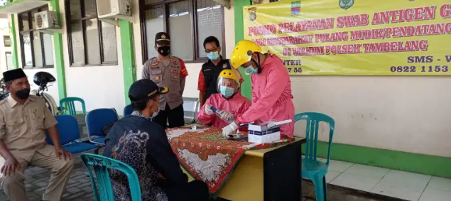 Pelaksanaan Swab Antigen dan Rapid Test gratis Polsek Tambelang di gelar bersama unsur Muspika Kecamatan Sukawangi, dan diperuntukan kepada warga masyarakat yang pulang mudik maupun pendatang baru.