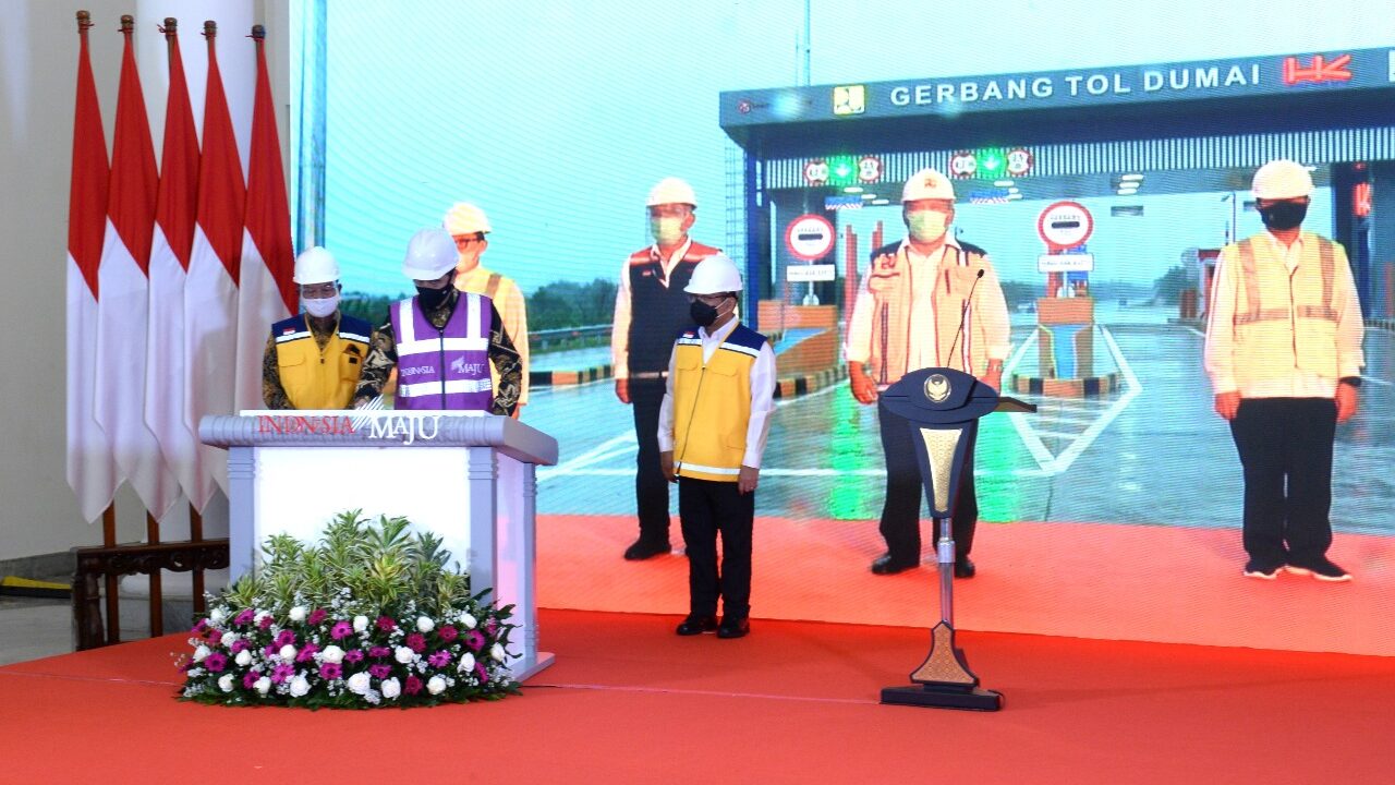 Siang itu, pada pukul 14.00 WIB, Presiden meresmikan jalan tol Pekanbaru-Dumai sejauh 131,5 kilometer secara virtual dari Istana Kepresidenan Bogor. Peresmian jalan tol secara virtual ini merupakan yang pertama kali dilakukan oleh Presiden Joko Widodo dan merupakan sebuah inovasi dalam kondisi adaptasi kebiasaan baru di tengah pandemi Covid-19.