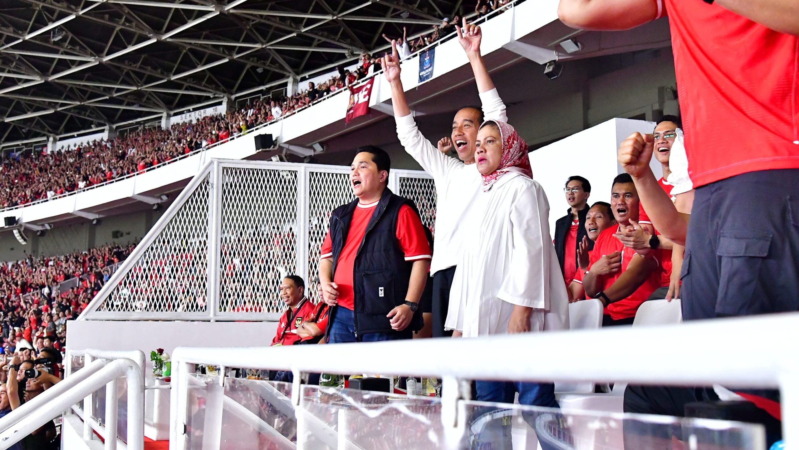 Presiden Joko Widodo turut menyaksikan kemenangan tim nasional sepak bola Indonesia atas Vietnam pada laga lanjutan Kualifikasi Piala Dunia 2026 Zona Asia Grup F di Stadion Utama Gelora Bung Karno, Jakarta, Kamis malam, 21 Maret 2024. Kemenangan 1-0 tim Garuda diraih melalui gol yang dicetak oleh Egy Maulana Vikri pada menit ke-52.