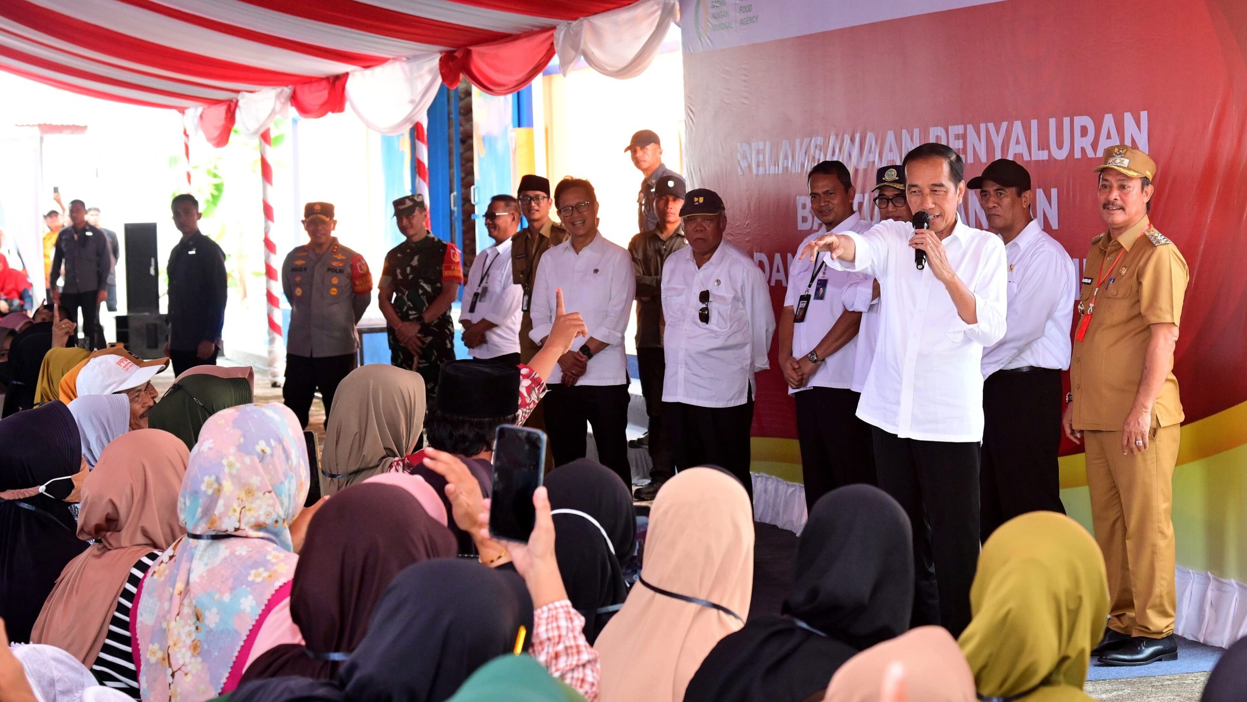 “Ini untuk yang 10 kilo Januari sudah diterima? Februari sudah? Maret sudah, kan sudah diterima. Nanti akan dilanjutkan April, Mei, Juni. Setuju?” ujar Presiden Jokowi yang dijawab masyarakat yang hadir dengan setuju