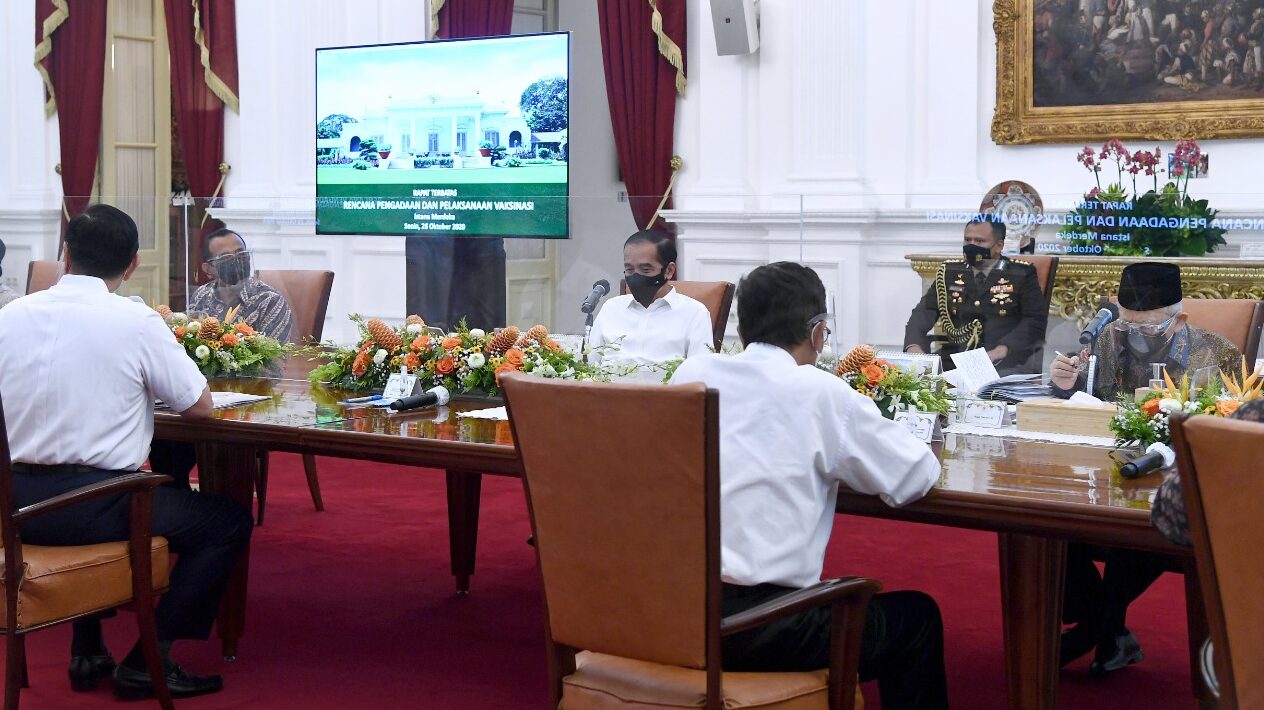 Presiden Jokowi memimpin rapat terbatas mengenai rencana pengadaan dan pelaksanaan vaksinasi di Istana Merdeka, Jakarta, Senin, 26 Oktober 2020.