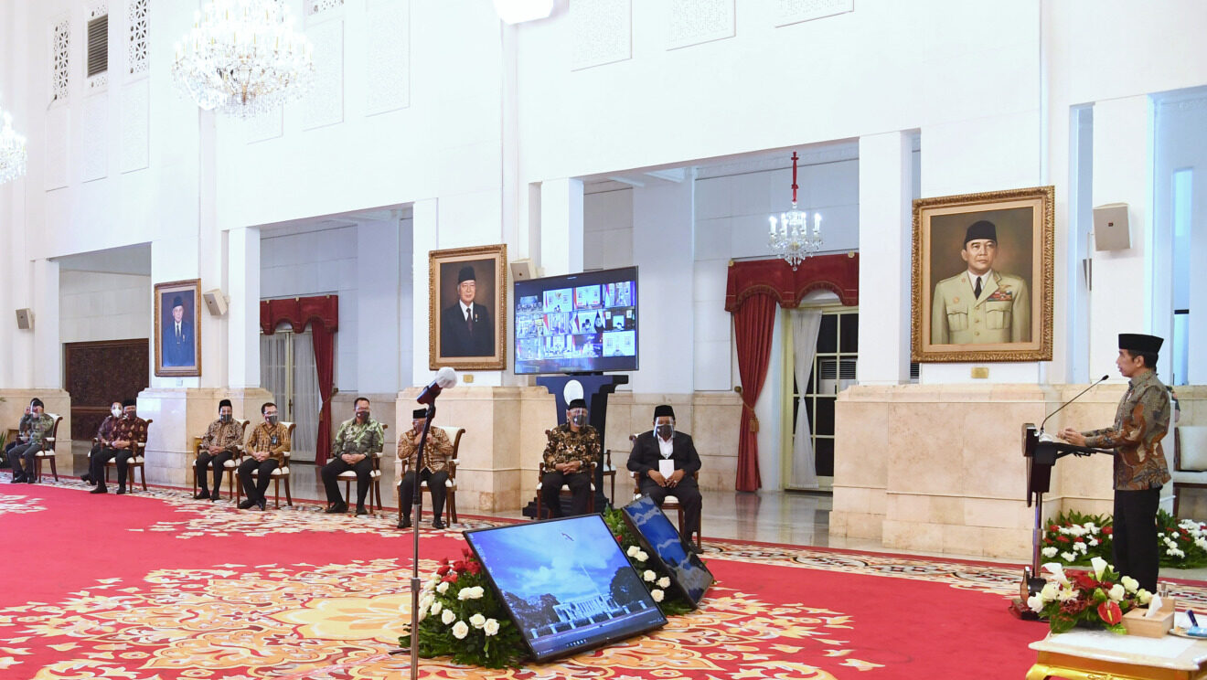 Presiden RI meluncurkan Gerakan Nasional Wakaf Uang dan Meresmikan Brand Ekonomi Syariah di Istana Negara, Jakarta pada hari Senin, 25 Januari 2021.