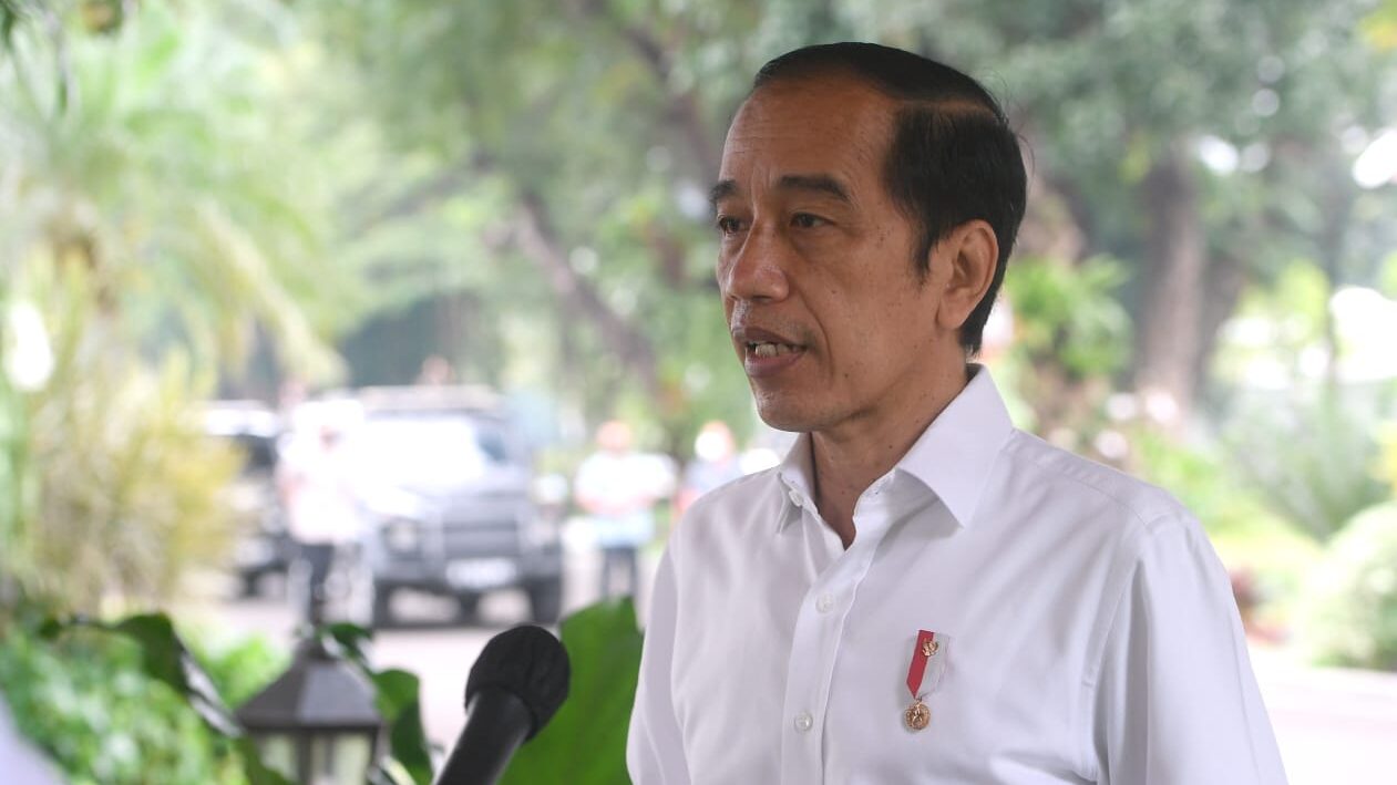 Presiden Republik Indonesia, Joko Widodo, menyampaikan keterangan pers terkait bencana di Provinsi NTT dan Provinsi NTB pada Senin, 5 April 2021, di Istana Merdeka, Jakarta.