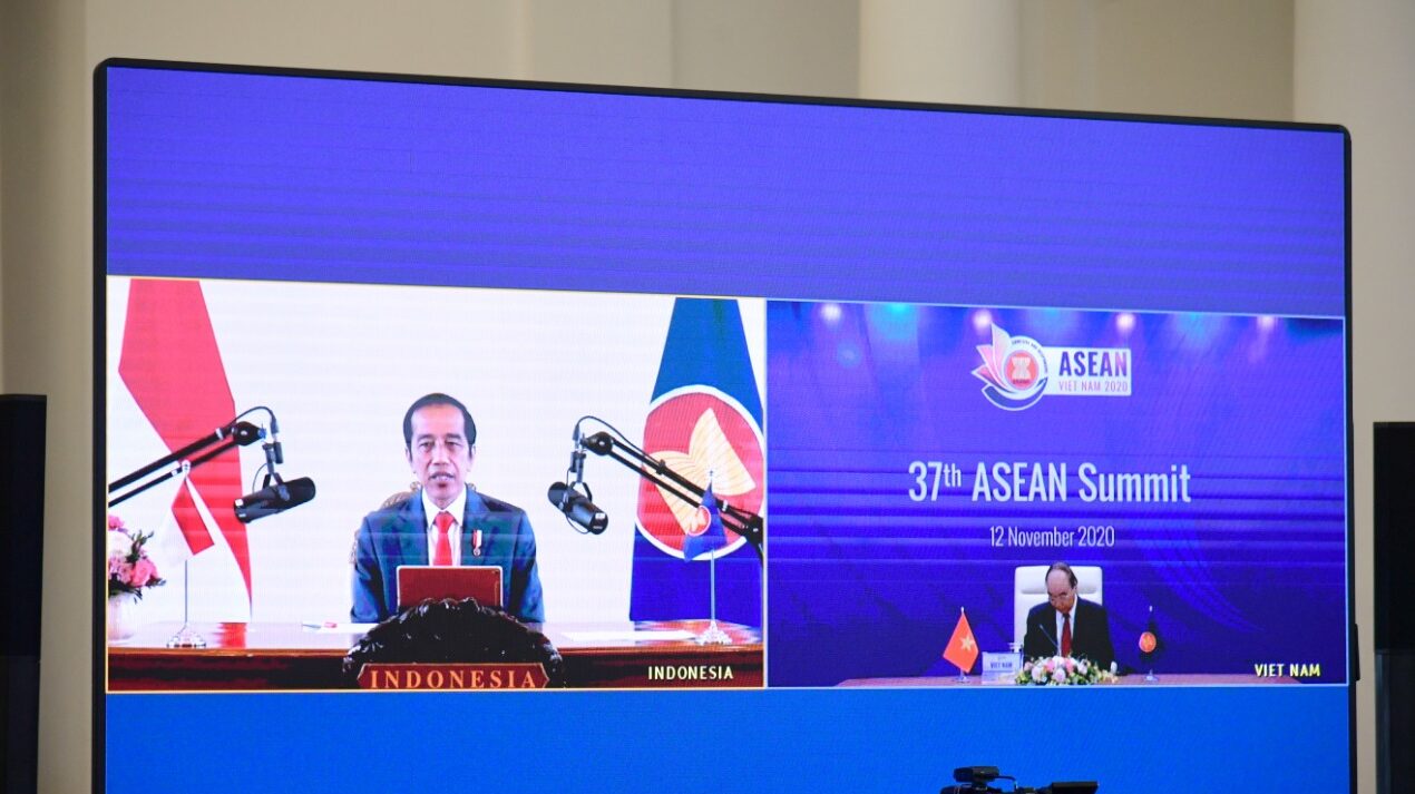 Presiden Joko Widodo menyampaikan pidato pada KTT Pleno ke-37 ASEAN secara virtual melalui konferensi video dari Istana Kepresidenan Bogor, Provinsi Jawa Barat, Kamis, 12 November 2020.