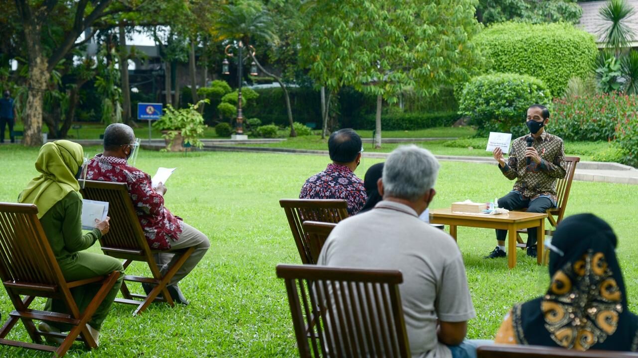Presiden Jokowi menyerahkan secara langsung bantuan modal kerja sebesar Rp2,4 juta bagi para pelaku usaha mikro dan kecil yang berasal dari DKI Jakarta dan Kepulauan Seribu di halaman tengah Istana Kepresidenan, Jakarta, Rabu, 16 Desember 2020