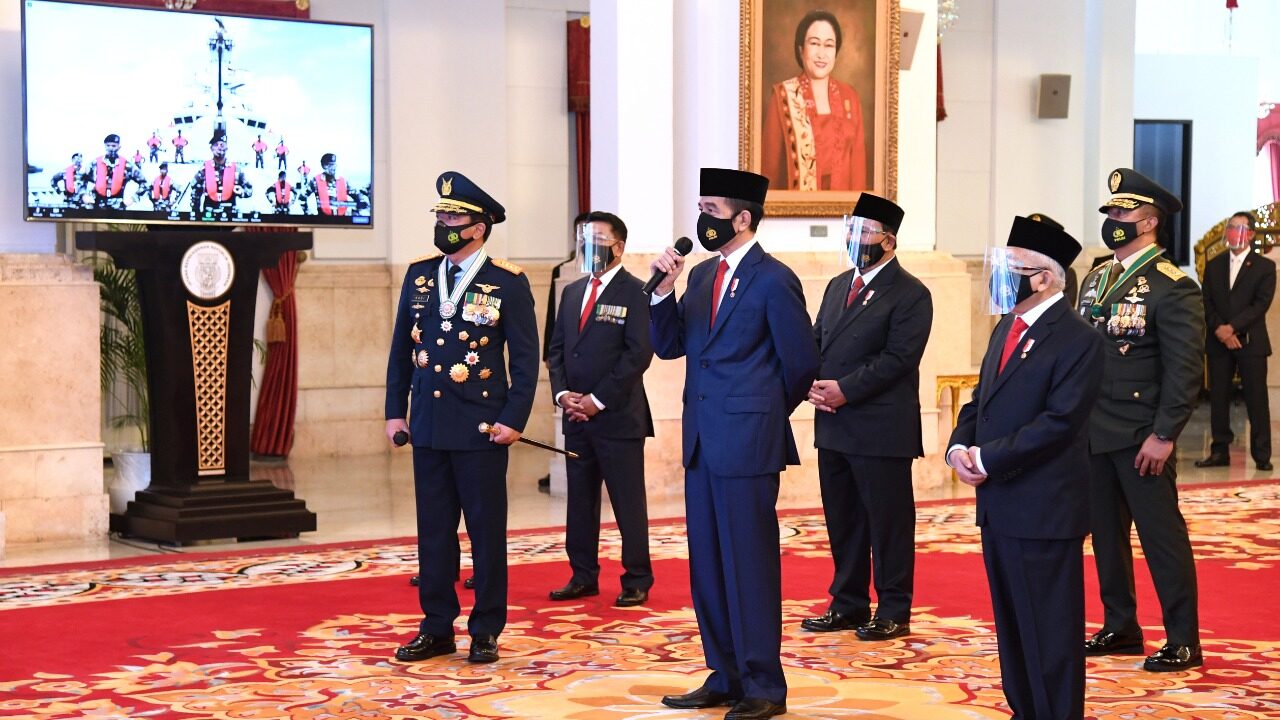 Presiden juga memberikan penghargaan setinggi-tingginya kepada prajurit TNI yang selalu berada di garda terdepan dalam misi kemanusiaan dan atas peran aktif TNI dalam penanganan dampak pandemi Covid-19 baik dalam mendisiplinkan penerapan protokol kesehatan maupun dalam perawatan di rumah sakit TNI.