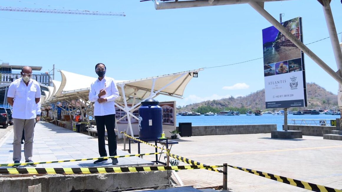 Presiden Jokowi meninjau sejumlah pengembangan prasarana yang berada di Kampung Ujung, Labuan Bajo, Kecamatan Komodo, Provinsi Nusa Tenggara Timur, Kamis, 1 Oktober 2020.