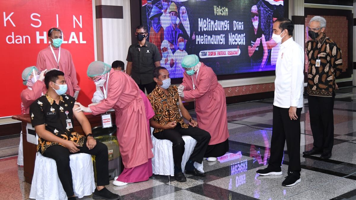 Setelah meninjau vaksinasi massal bagi para ulama, tokoh lintas agama, dan santri di Masjid Agung Jawa Tengah, Presiden Joko Widodo melanjutkan agenda kunjungan kerja di Provinsi Jawa Tengah dengan meninjau vaksinasi massal bagi para pelayan publik. Kali ini, kegiatan vaksinasi dipusatkan di Gedung Gradhika Bhakti Praja, Kompleks Kantor Gubernur Jawa Tengah, Kota Semarang, Rabu, 10 Maret 2021.