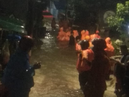 Petugas gabungan langsung dikerahkan untuk menangani tanah longsor di Jl Damai RT 04/02, Kelurahan Ciganjur, Jagakarsa, Jakarta Selatan, Sabtu (10/10) malam.