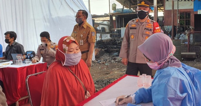 Jakarta — Warga Kelurahan Curug, Kecamatan Bojongsari, Depok, berbondong-bondong mendatangi lokasi vaksinasi presisi massal slum area di lingkungan pemulung Jalan Lestari III RT 02/6, Kelurahan Curug, Kecamatan Bojongsari, Depok, Selasa (13/7/2021) pagi.