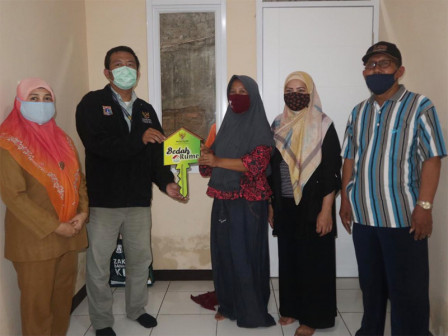 Baznas Bazis Jakarta Timur merampungkan pembangunan (rehab) rumah Ima Ismiatun (31), warga Jl Cipinang Bali IV RT 06/13 Cipinang Muara, Jatinegara, Senin (12/10).