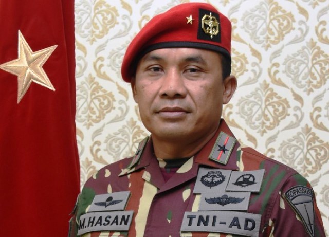 Brigjen TNI Mohamad Hasan resmi menggantikan Mayjen TNI I Nyoman Cantiasa. Acara serah terima tongkat komando itu digelar di Markas komando (Mako) Kopassus, Cijantung, Jakarta Timur, Kamis.