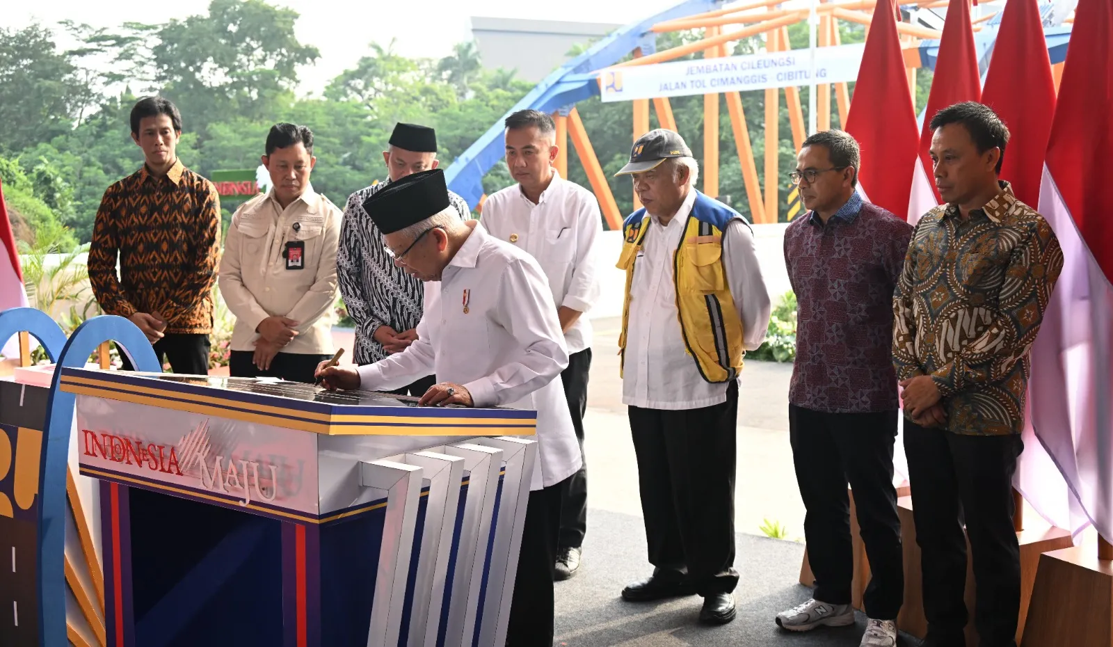 “Konektivitas antarkawasan di wilayah Jakarta dan sekitarnya diharapkan dapat meningkat dengan terintegrasinya Jalan Tol Cimanggis–Cibitung dengan jaringan jalan tol di kawasan Jabodetabek,” tutur Wakil Presiden (Wapres) K.H. Ma’ruf Amin saat meresmikan tol sepanjang 26,18 kilometer di Jembatan Sungai Cileungsi KM 57+400, Jalan Tol Cimanggis–Cibitung, Kecamatan Cileungsi, Kabupaten Bogor, Selasa sore (09/07/2024).