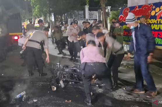 Aksi unjuk rasa ricuh hingga malam. Satu sepeda motor dinas polisi dibakar massa di depan Universitas Jambi di kawasan Telanaipura.