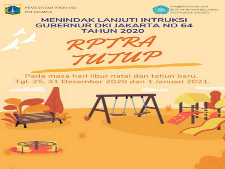 Pemerintah Kota (Pemkot) Administrasi Jakarta Barat menutup sementara Ruang Publik Terpadu Ramah Anak (RPTRA) selama libur Natal 2020 dan Tahun Baru 2021 (Nataru).
