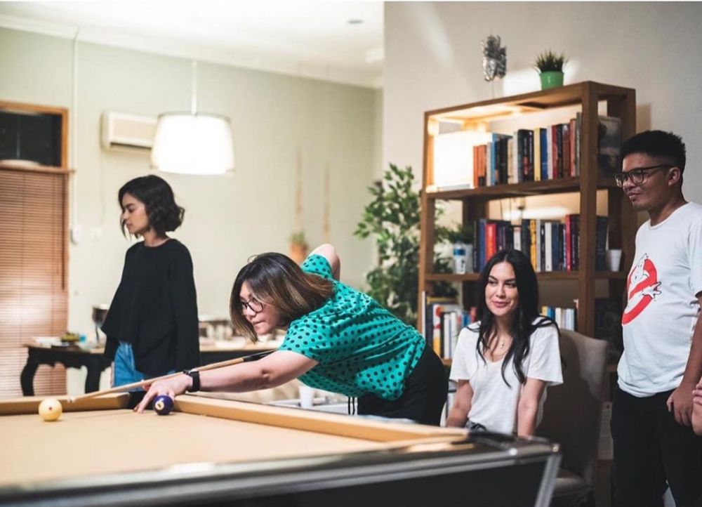 Artis cantik yang satu ini memiliki ruangan biliar di bagian tengah rumahnya nih. Kerap buat kumpul bareng teman-temannya loh