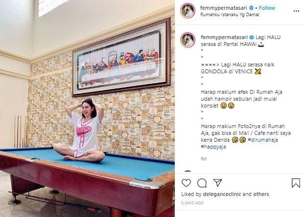 Femmy Permatasari juga memiliki rumah mewah lengkap dengan meja biliar nih. Saat di rumah aja, meja biliar malah buat halu-haluan nih!