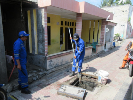 Satuan Tugas (Satgas) Suku Dinas Sumber Daya Air Kepulauan Seribu melakukan normalisasi saluran di RW 01 dan RW 02 Kelurahan Pulau Tidung, Kecamatan Kepulauan Seribu Selatan.
