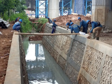 Satgas Sumber Daya Air (SDA) Kecamatan Jatinegara merampungkan pembangunan crossing saluran di Jl DI Panjaitan, Cipinang Besar Selatan, Jatinegara, Jakarta Timur, Senin (12/10).
