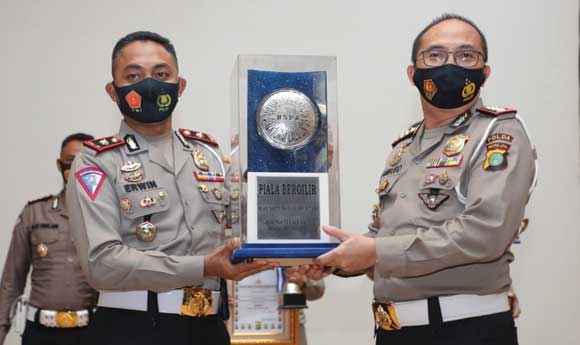 Atas prestasi tersebut, Satlantas Polrestro Depok berhak membawa pulang piala bergilir yang diberikan langsung Dirlantas Polda Metro Jaya (Kombes. Pol. Sambodo Purnomo Yogo, S.I.K., M.T.C.P).