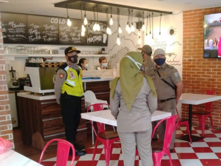 Sekitar 20 personil Satpol PP Kecamatan Cilandak dibantu aparat TNI dan Polisi, melakukan monitoring penerapan protokol kesehatan pada 10 tempat usaha, restoran, rumah makan, cafe dan perkantoran di Jalan Terogong Raya.
