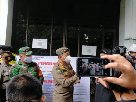Satpol PP DKI Jakarta, Kamis (17/12), menyegel satu tempat usaha resto di Jalan Gunawarman, Kelurahan Selong, Kebayoran Baru, Jalarta Selatan.