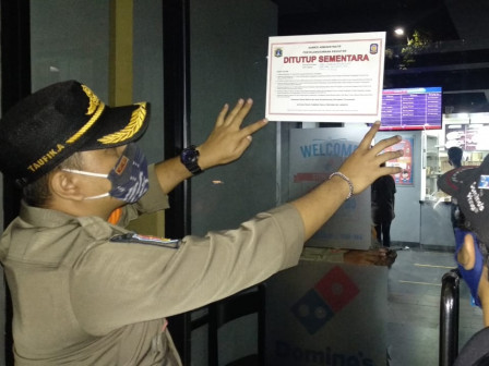 Satpol PP Jakarta Selatan, Kamis (31/12) malam, menutup sementara satu gerai usaha kuliner di Jalan Wijaya I, Kelurahan Petogogan, Kebayoran Baru.