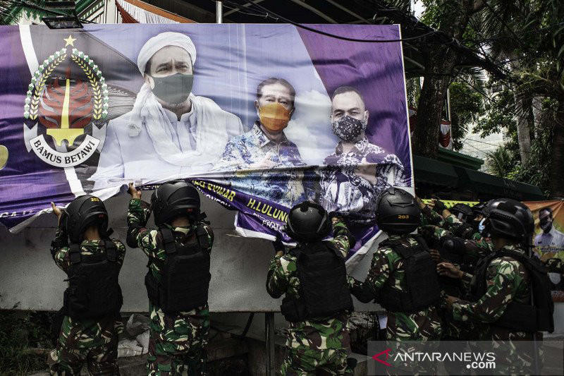 Mediaonline.co.id, JAKARTA – Aparat gabungan TNI, Brimob, dan Satpol PP DKI Jakarta berpatroli dan mencopot baliho-baliho tidak berizin, termasuk yang bergambar Imam Besar FPI (Front Pembela Islam) Habib Rizieq Shihab.