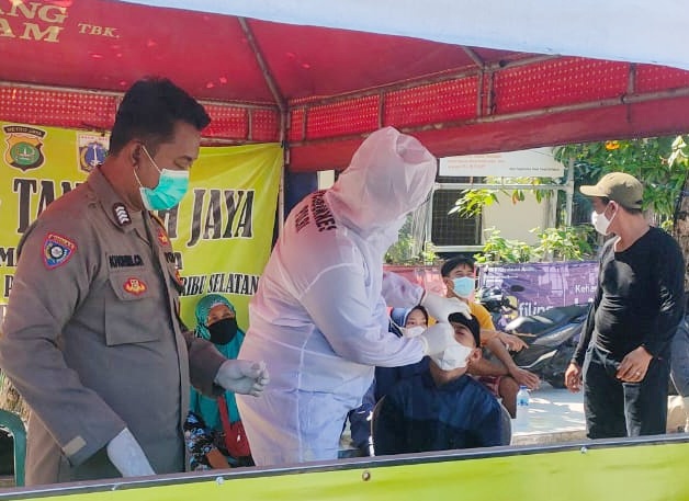 JAKARTA – Dalam rangka mencegah penyebaran dan menekan kasus Covid-19, Polsek Kepulauan Seribu Selatan Polres Kepulauan Seribu bersama Tim Kampung Tangguh Jaya Pulau Pari dan Tenaga Kesehatan Puskesmas terus melakukan testing Swab Antigen kepada warga Pulau Pari yang baru tiba seusai bepergian keluar Pulau Seribu. Minggu (18/7).