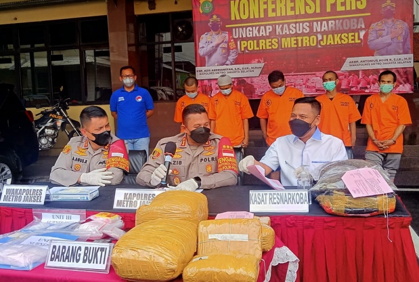Jakarta – Polres Metro Jakarta Selatan berhasil membongkar serangkaian kasus peredaran narkotika selama satu pekan. Sejumlah barang bukti narkoba jenis ganja dan sabu turut disita dalam pengungkapan tersebut.