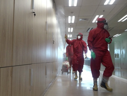 Kasudin Gulkarmat Jakarta Pusat, Asril Rizal mengatakan, seluruh ruangan yang ada di 23 lantai Gedung Blok G ini disemprot cairan disinfektan selama tiga hari berturut-turut, mulai Kamis (17/90) hingga Sabtu (209), guna mensterilkan area gedung dari penyebaran virus corona.