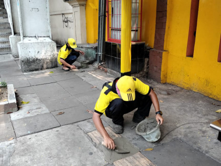 Satuan Pelaksana (Satpel) Bina Marga Kecamatan Taman Sari, Jakarta Barat, melakukan perbaikan sembilan titik trotoar yang mengalami kerusakan.Korlap Satpel Bina…