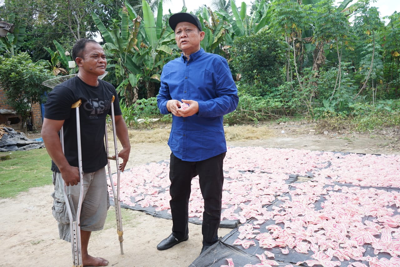 Bakal Calon Bupati Ogan Komering Ulu (OKU) Timur Lanosin Hamzah, Sabtu (22/8), mengunjungi pelaku usaha kerupuk ubi di Desa Gunung Mas, Kecamatan Belitang 1.