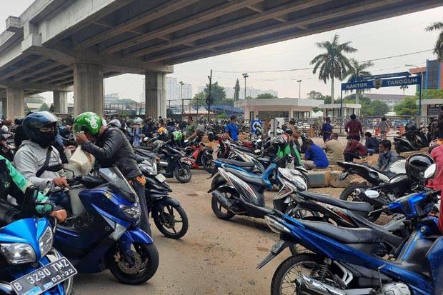 JAKARTA – Kemacetan terjadi di depan Kantor Samsat Jakarta Timur , Jalan Mayjen DI Panjaitan, Kelurahan Cipinang Cimpedak, Kecamatan Jatinegara, Senin (19/7/2021). Kemacetan terjadi karena antrean panjang wajib pajak yang tak bisa mengurus keperluannya lantaran sistem di kantor Samsat Jakarta Timur down.