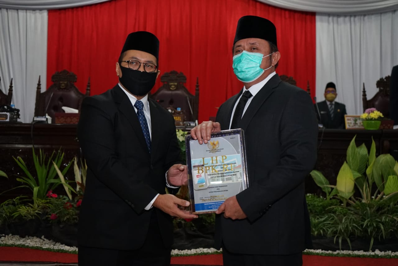 PALEMBANG – Pemerintah Provinsi Sumatera Selaran kembali berhasil pertahankan opini Wajar Tanpa Pengecualian (WTP) atas laporan hasil pemeriksaan keuangan oleh Badan Pengawas Keuangan (BPK) RI. Bahkan, predikat WTP yang diberikan ini merupakan predikat ke enam kalinya yang diterima Pemprov Sumsel. Penerimaan WTP tersebut langsung diberikan Kepala BPK RI Perwakilan Sumsel Harry Purwaka kepada Gubernur Sumsel H Herman Deru dalam rapat paripurna istimewa ke 1 DPRD Sumsel, Senin (29/6).