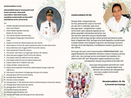 Kami juga tak luput untuk menyampaikan PERMOHONAN MAAF atas segala kesalahan dan kekhilafan Almarhum selama hidupnya, teriring salam dan doa, semoga semua amal ibadah dan kebaikan Alm. diterima Allah SWT dan dihapuskan segala kesalahannya serta mendapatkan tempat yang terbaik di sisi Allah SWT.