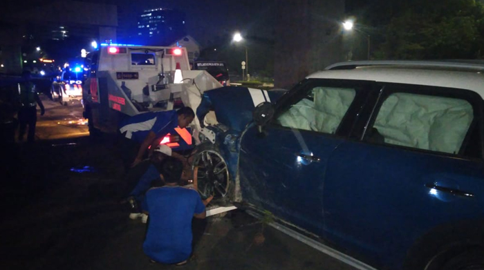 Mediaonline.co.id – Sebuah mobil Mini Cooper mengalami kecelakaan tunggal di Kebayoran Baru, Jakarta Selatan. Mobil berplat nomor B 1707 SSK menabrak tiang beton MRT di dekat kantor Kejaksaan Agung, Rabu (12/8) dini hari.