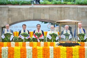 Pagi Hari di New Delhi, Presiden Jokowi Beri Penghormatan di Mahatma Gandhi Samadhi