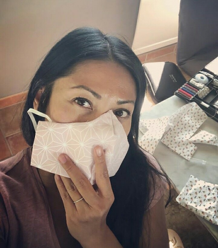 “Atelier couture #maskSinger, Penyanyi/Tukang jahit making my own mask. Stay safe everyone,” tulis Anggun di laman Instagramnya.
