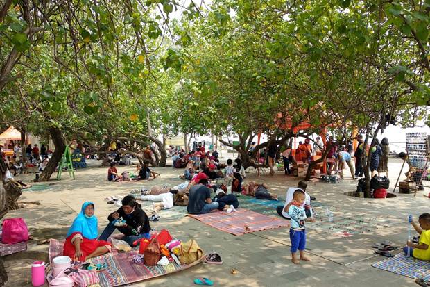 Pengamatan MNC Portal Indonesia di lokasi, ratusan pengunjung memadati area pantai putih di sekitar Pantai Lagoon dan area rindang bawah pohon dengan menggelar tikar dan sejumlah hidangan lauk pauk yang sudah disiapkan dari rumah usai melaksanakan shalat Idul Fitri.