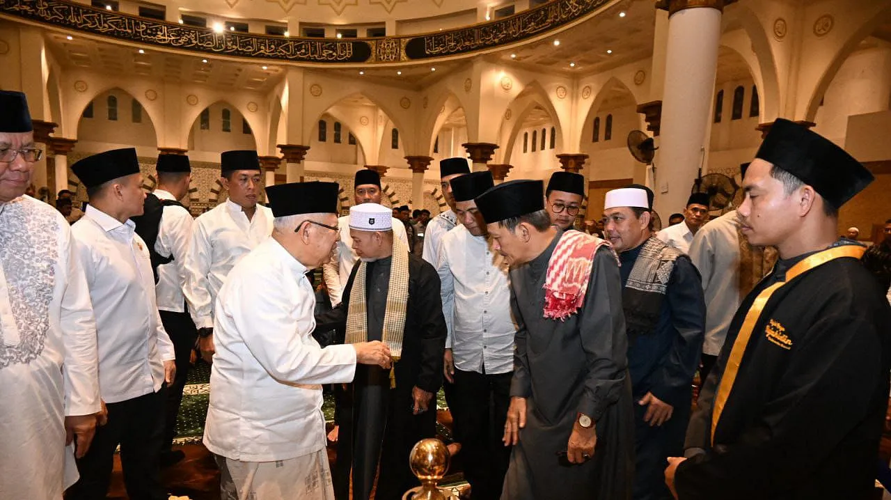 Lepas memberikan tausiyah, Wapres menunaikan salat tarawih berjemaah dengan diimami oleh Ust Sumardi Alhafiz.